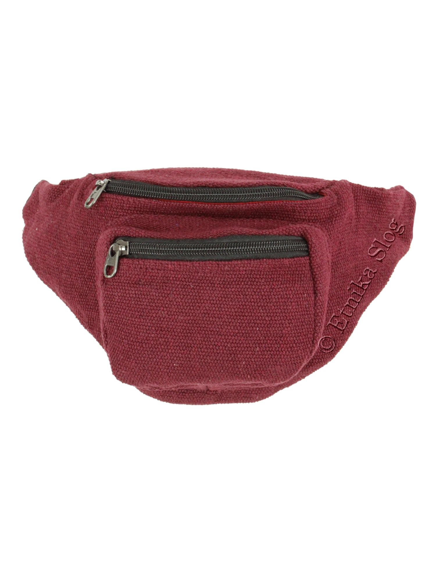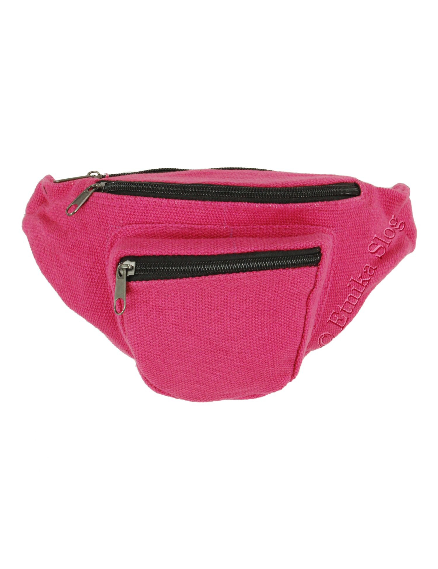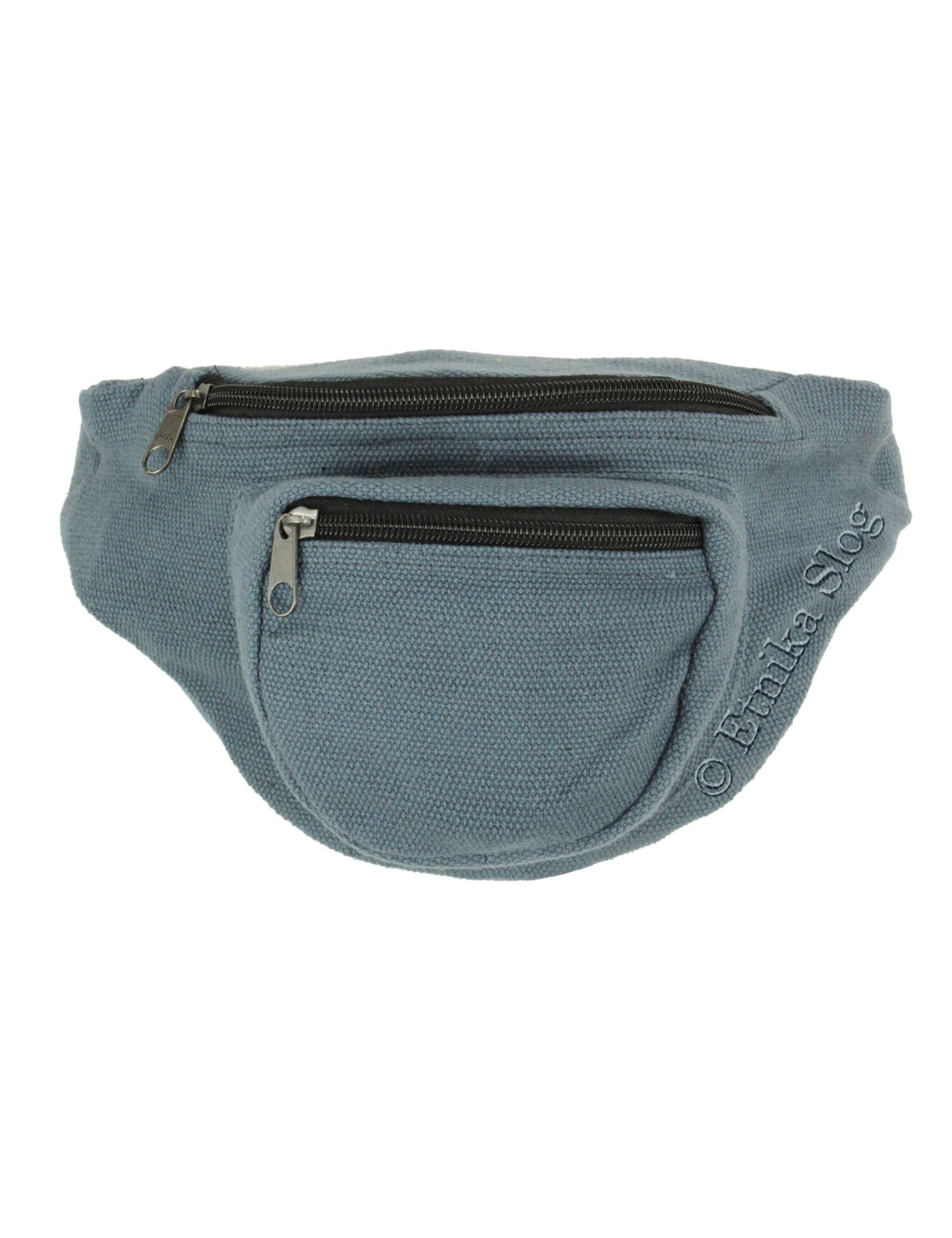 TORBICA ZA OKROG PASU IZ BOMBAŽA, ENOBARVNA, S TREMI PREDALI IN ZAPIRANJEM Z ZADRGO. DIMENZIJE 34X16 CM, NASTAVLJIVA DOLŽINA PASU. DOBAVLJIVA V RAZLIČNIH BARVAH.